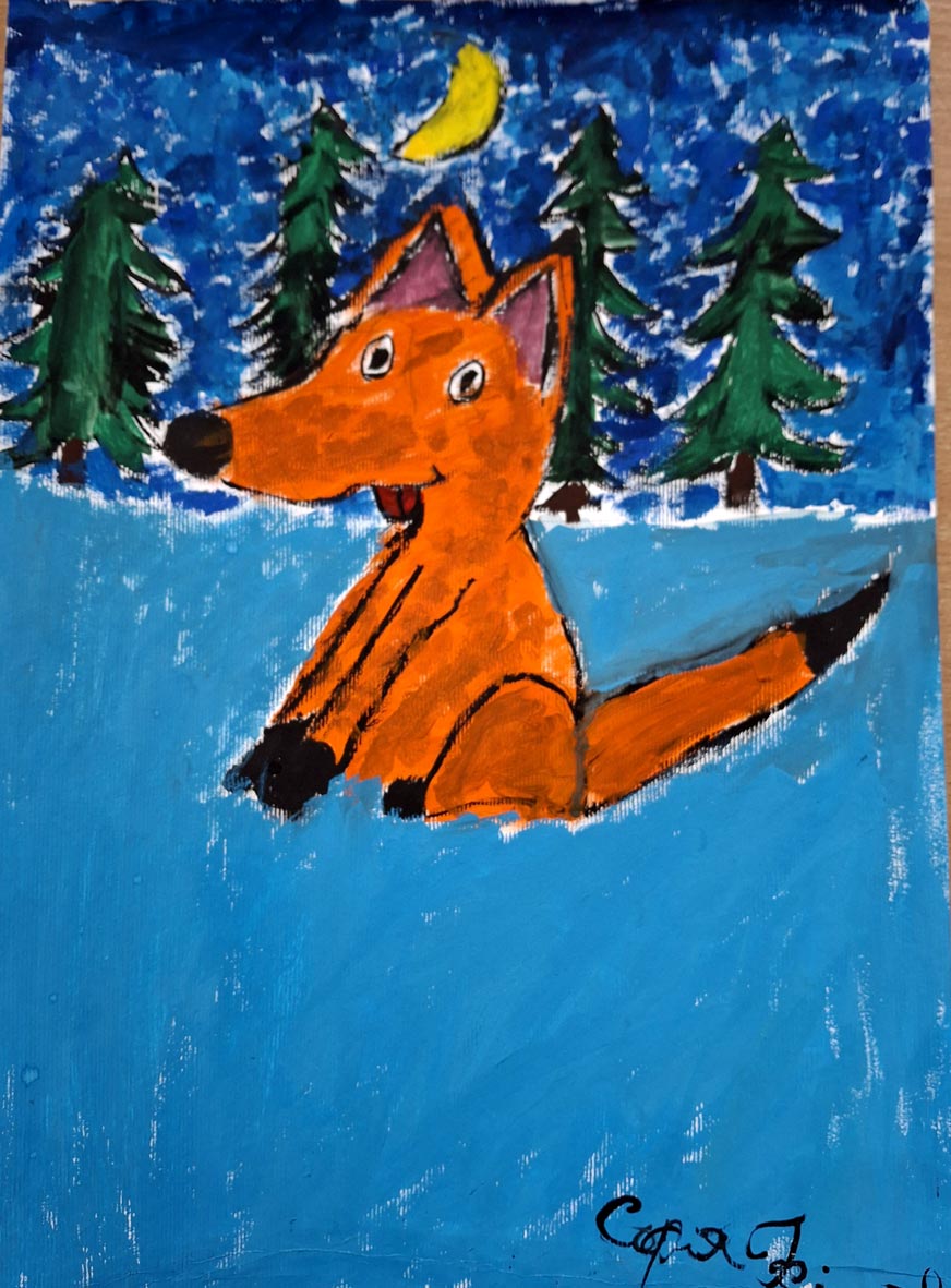 "Лисиця на снігу", гуаш