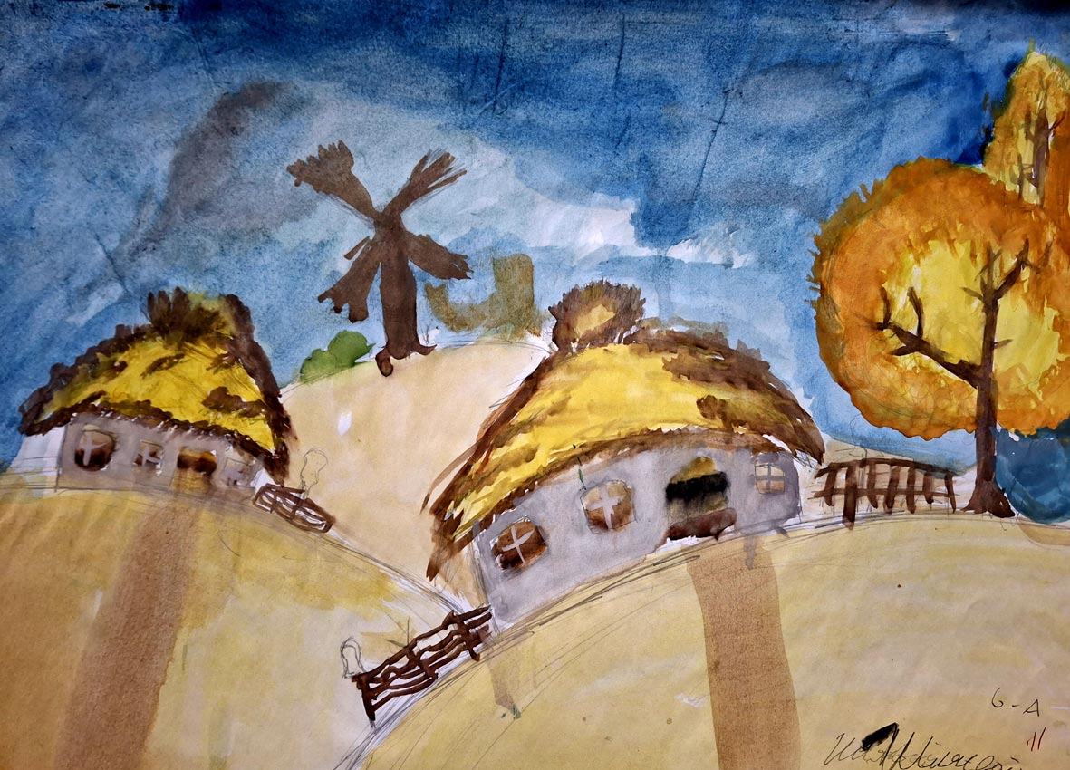"Осінь в селі", акварель