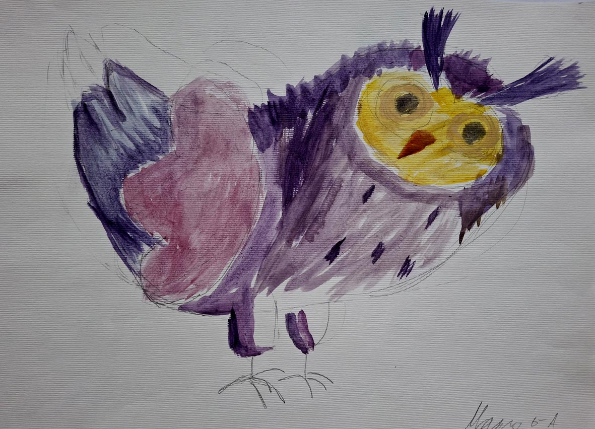 "Сова", акварель