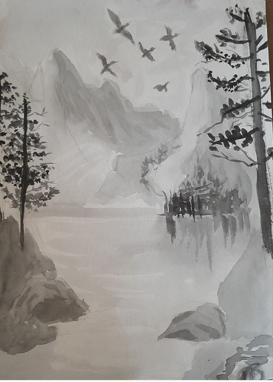 Гірський пейзаж (техніка виконання акварель)