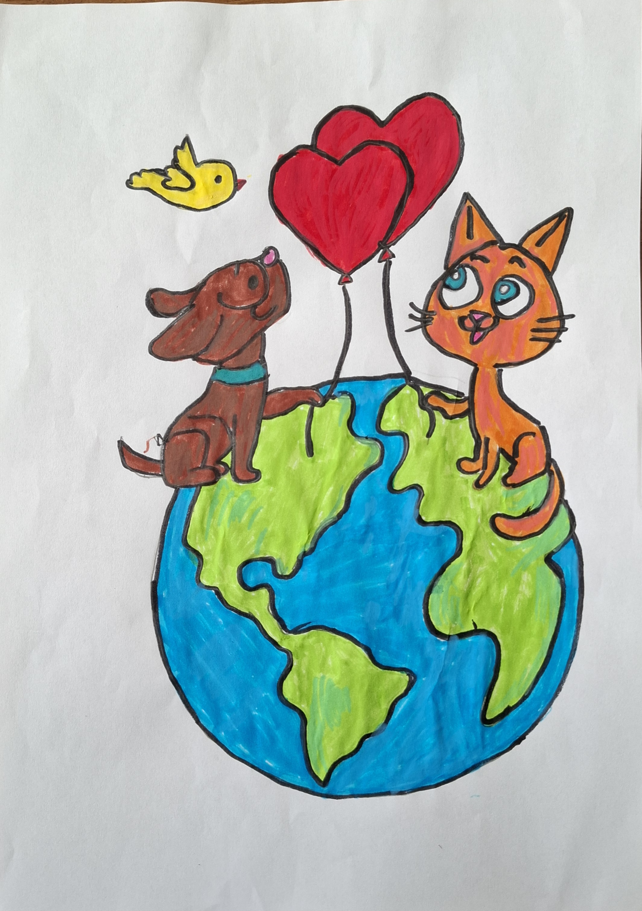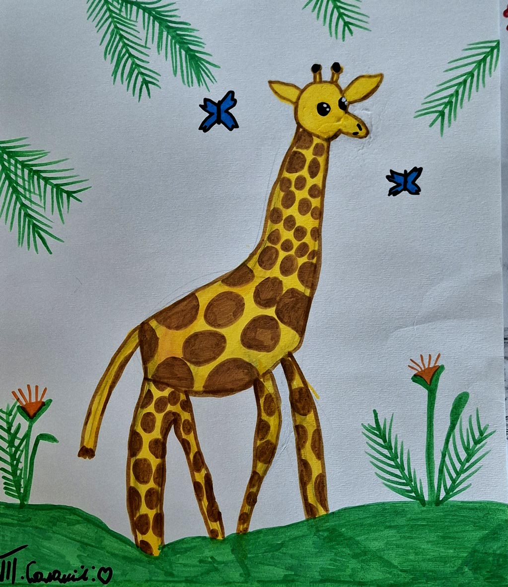 "Жирафа", фломастери, акварель