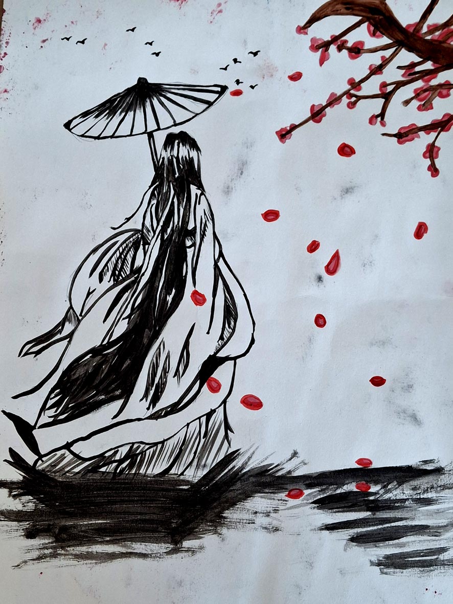 "Цвіт сакури", туш, акварель